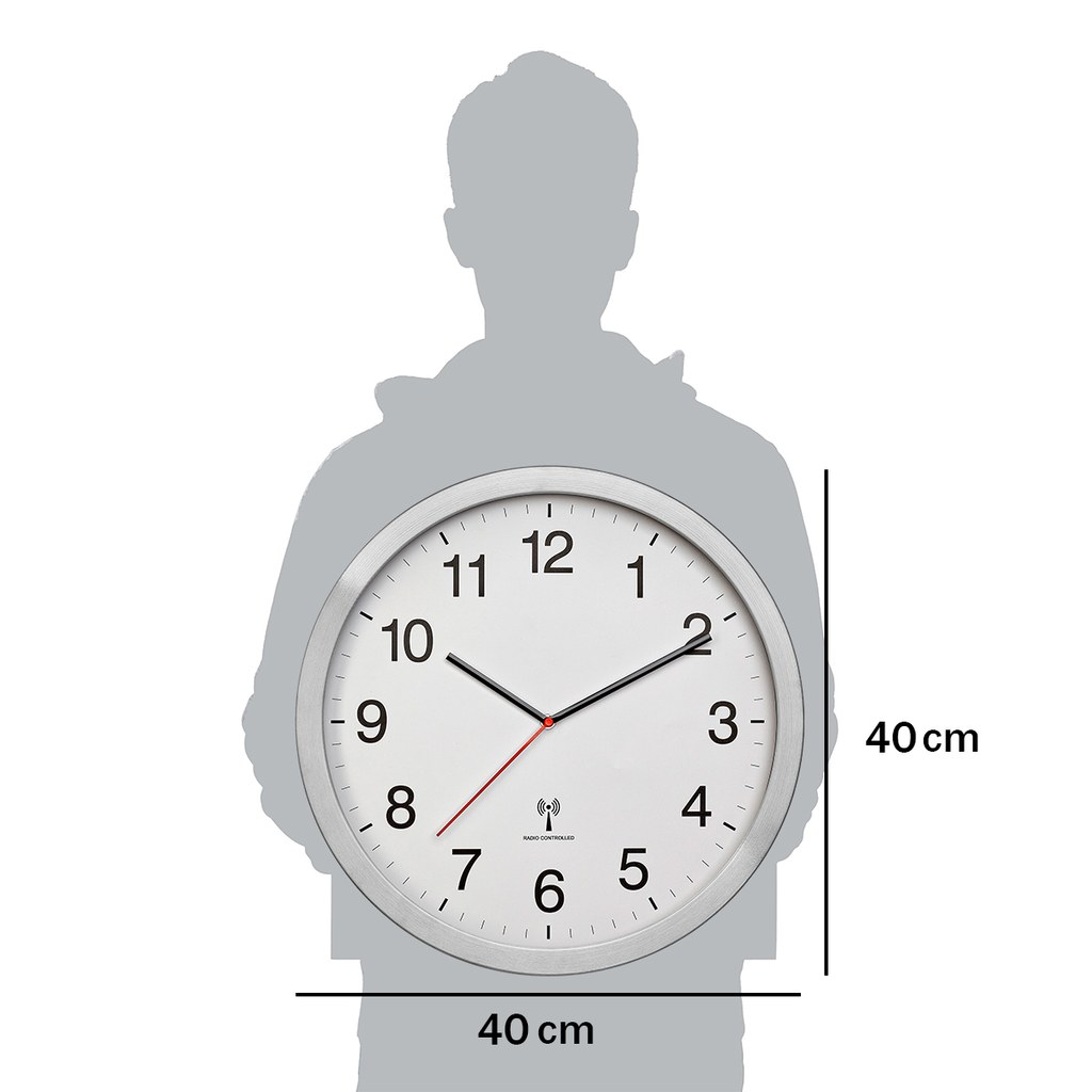 Rádiem řízené nástěnné hodiny XL jsou s průměrem 40 cm opravdovým gigantem. Díky tomu je čas vidět prakticky odkudkoli. Z jejich extra velkého ciferníku lze snadno odečítat čas, a to i na dálku. Je ideální pro dlouhé chodby, vysoké místnosti a předsíně. Pro ty, kteří si potrpí na dochvilnost, je kromě klasického analogového zobrazení hodin a minut také dobře viditelná červená sekundová ručička.