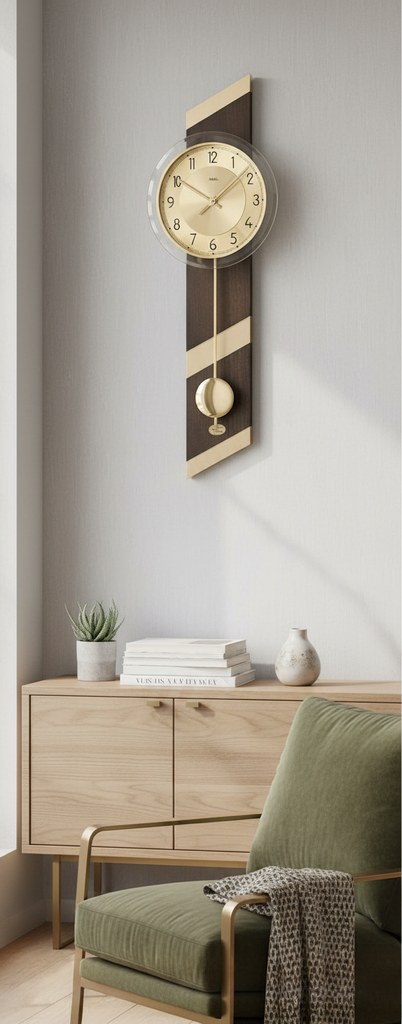 Luxusní nástěnné hodiny s chromovaným kyvadlem.