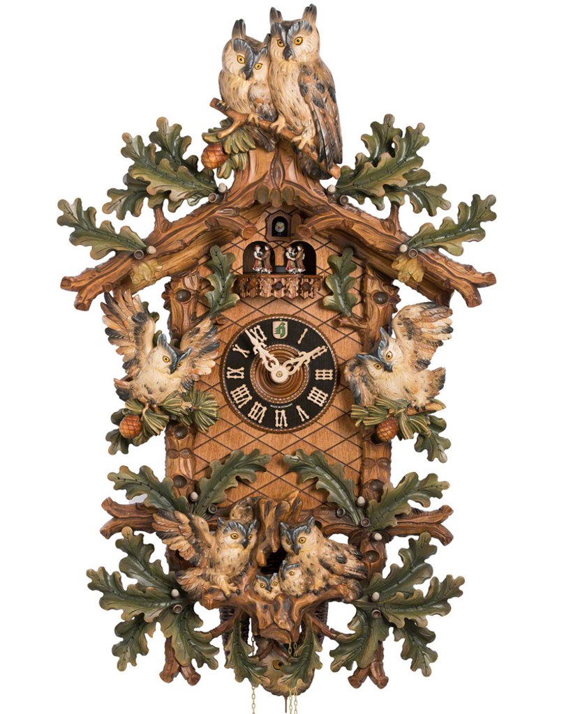 Tento krásně barevný model se ocitá ve větvoví koruny stromu, kde se usídlila soví rodinka s mladými sovičkami. Veškeré zdobení hodin je pečlivě ručně vyřezáno a malováno. Kromě klasické pohyblivé kukačky zde také každou hodinu tančí čtyři páry tanečníků.