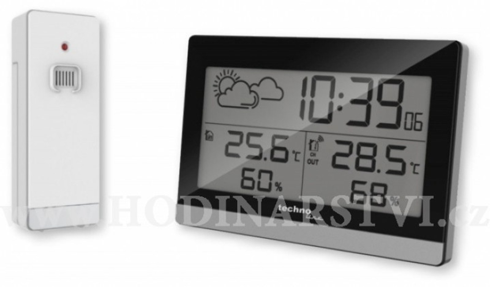 - velikost číslic na displeji – čas 22 mm, vnitřní a vnější teplota 13 mm, vnitřní a vnější vlhkost 10 mm