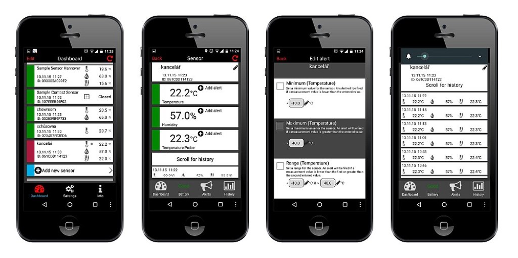 V aplikace lze nastavit alarmy měřených veličin.