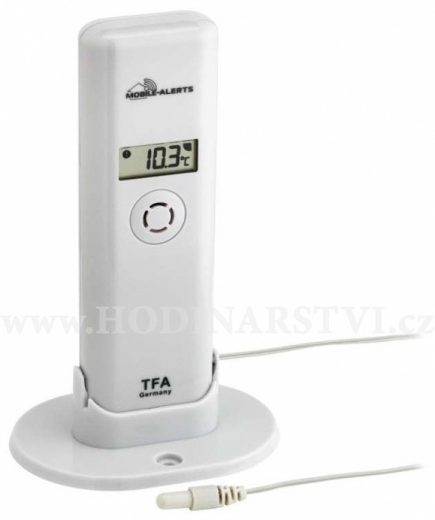 Přídavné bezdrátové elektronické čidlo pro měření teploty/vlhkosti s vodotěsným kabelovým senzorem pro měření teploty. Vhodné k měření venkovní teploty/vlhkosti, dále např. teploty/vlhkosti v dětském pokoji, vinném sklepu atd. Určeno pro TFA 31.4001.02, 31.4002.02.