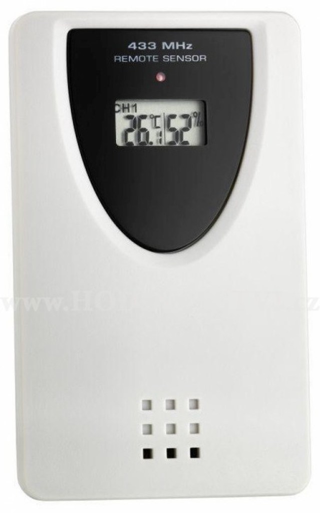 Bezdrátové elektronické čidlo pro měření teploty a vlhkosti. Pracuje na frekvenci 443 MHz. Vhodné k měření venkovní teploty, dále např. teploty v dětském pokoji, vinném sklepu atd. Určeno pro přístroje TFA 30.3049.