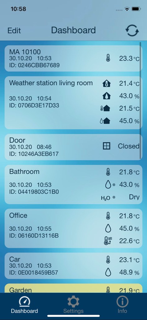 - v přehledu na displeji vašeho mobilního zařízení vidíte všechna bezdrátová čidla (pokud je použito více bezdrátových čidel) - lze přidat nová bezdrátová čidla a odstranit nebo přejmenovat vybraná - registrace bezdrátového čidla pomocí QR kódu - vybraným bezdrátovým čidlům můžete nastavit teplotní alarmy, které vás upozorní v případě, že teplota stoupla, nebo klesla na nastavenou úroveň - různé barvy oken se zprávami na mobilním zařízení pro lepší orientaci - zobrazování notifikací (zpráv) např. o spuštění alarmu při dosažení nastavené teploty - možnost zobrazení naměřených dat za uplynulých 90 dní - indikace stavu baterií v jednotlivých bezdrátových čidlech - vysílání naměřených dat bezdrátovým čidlem každých 7 minut - brána má LED diody, které informují o její činnosti - barva brány bílá se stříbrnou anténou - napájení síťovým adaptérem 20V, 100mA (je součástí dodávky) - možnost postavení, nebo zavěšení