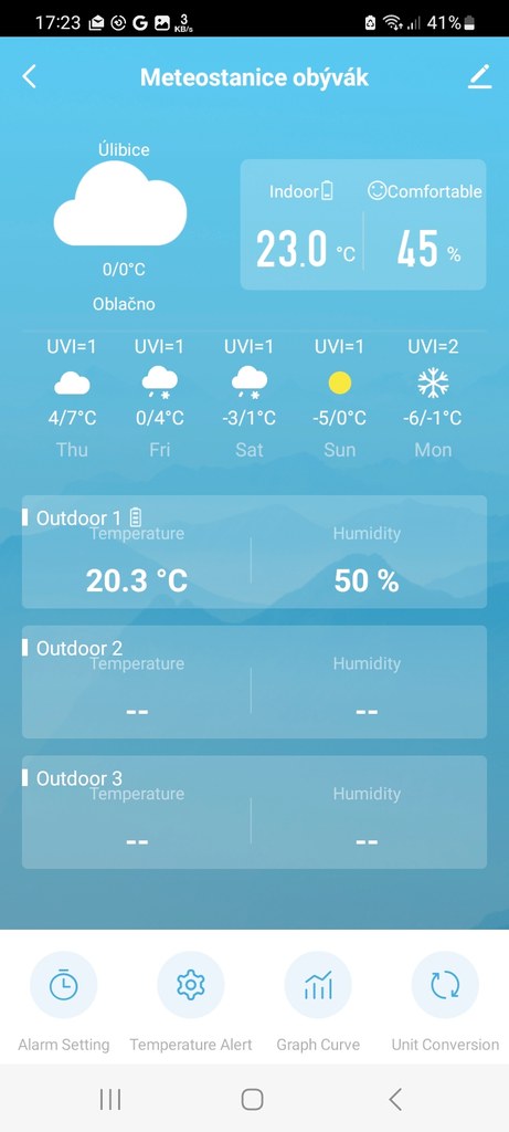 Sledování teplot a vlhkostí na externích čidlech - jedno je součástí balení