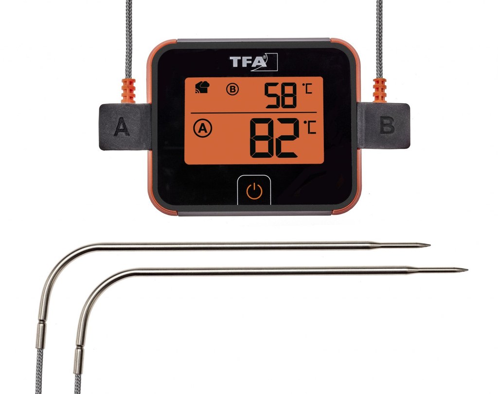 Bezdrátové čidlo (teploměr) se dvěma vpichovými sondami pro grilování a pečení. Naměřené teploty z čidla lze přenášet do meteostanic TFA řady VIEW a z nich mohou putovat přes WiFi na cloud výrobce, odkud se načítají do aplikace TFA VIEW. V aplikaci pak můžete sledovat teplotu připravovaného jídla a je zde také možné nastavit teplotní alarmy.