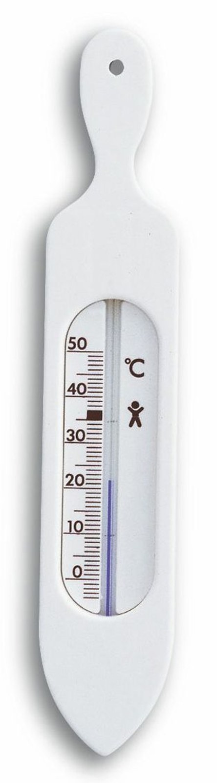 Plastový teploměr do koupele. Barva bílá.