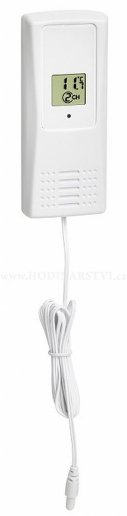 Čidlo teploty s kabelovou sondou a displejem kompatibilní s přístroji TFA 30.3062 TRIO, TFA 30.3056 VENICE A TFA 30.3054 KLIMA-MONITOR. Podrobné parametry: - Určeno k zavěšení - Hmotnost: 61g - Napájení na baterii - Rozměry: 45 x 20 x 111 mm