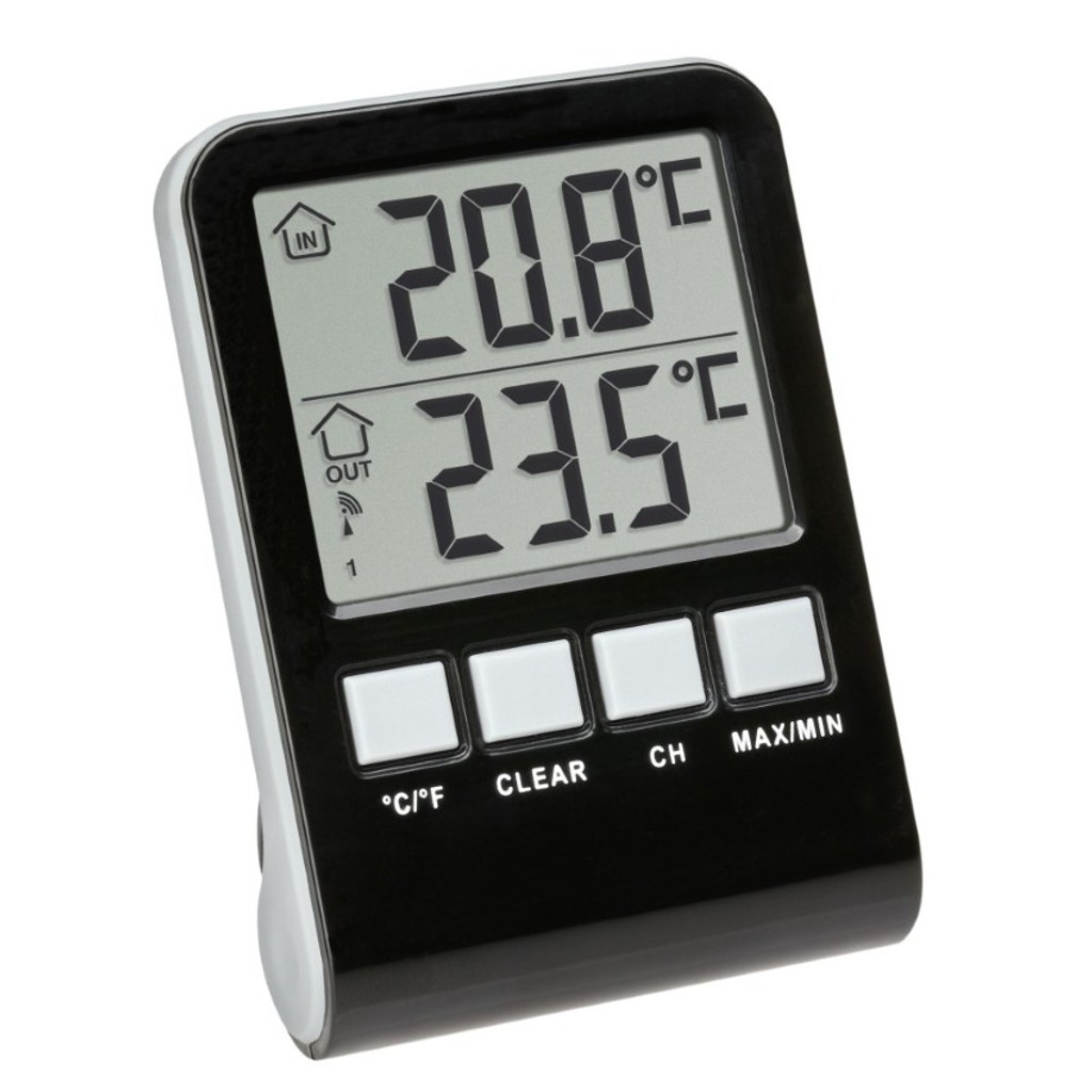 Digitální teploměr TFA 30.3067.10 PALMA je vybaven bezdrátovým plovoucím čidlem na měření teploty vody. Příjem a zobrazení měřených hodnot probíhá pomocí rádiového signálu na frekvenci 433 MHz až na vzdálenost 60 m. Součástí balení je přijímací základna a jedno plovoucí teplotní čidlo, které je určeno pro měření teploty vody 12 cm pod hladinou. Základna měří teplotu a na druhém řádku zobrazuje hodnotu z bezdrátového senzoru.