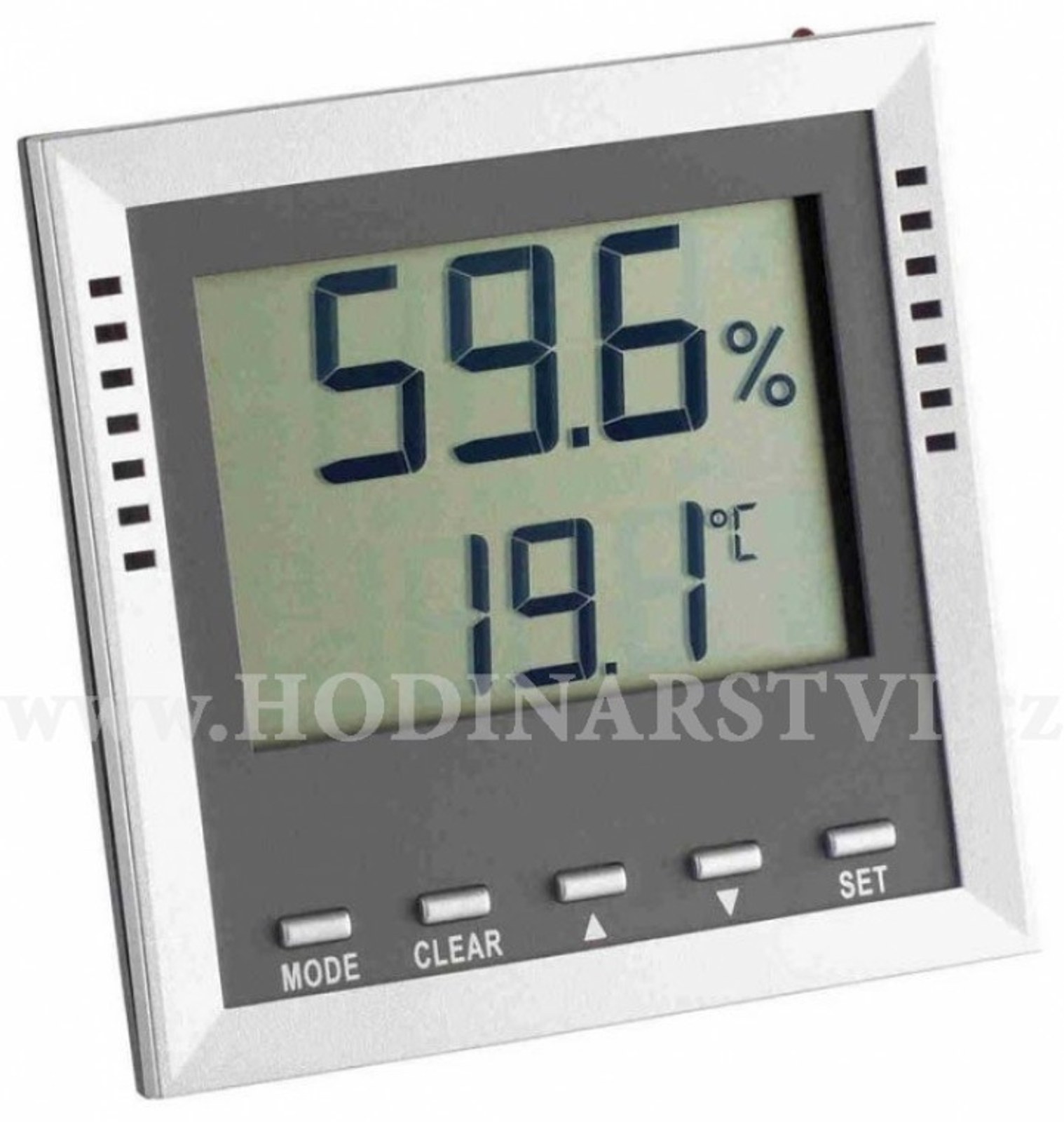Velký a přehledný displej přístroje zobrazuje naměřené hodnoty teploty a vlhkosti, dále lze pomocí pěti tlačítek na přední straně přístroje přepnout na zobrazení rosného bodu (na displeji zkratka Td) či teploty tzv. "vlhkého (mokrého) teploměru" (na displeji zkratka Tw). Kromě toho si přístroj pamatuje také naměřené min. a max. hodnoty od posledního manuálního vyresetování a má možnost nastavení automatického vypnutí přístroje po 12 min. době nečinnosti.
