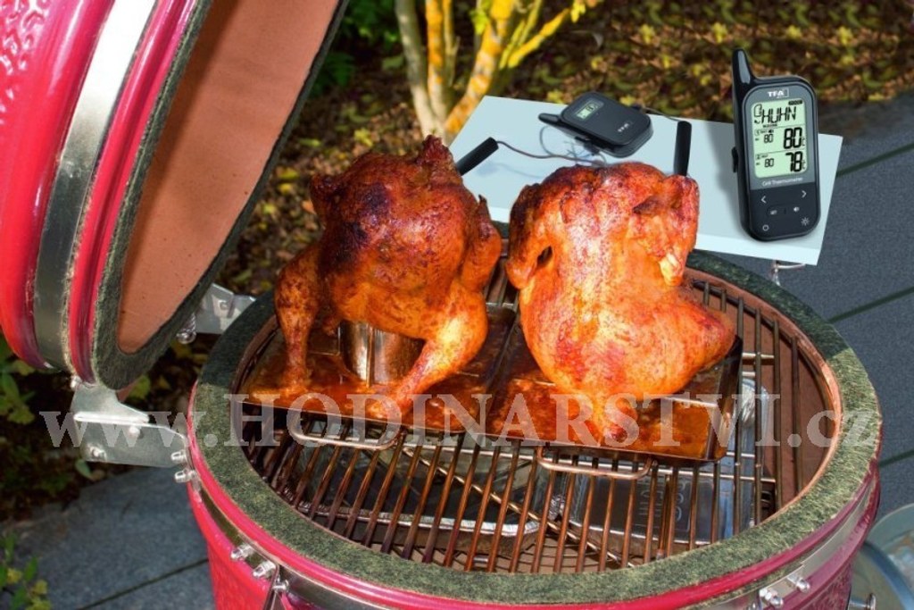 Jak dokolane připravit maso a drůbež? Pomocí kontroly teploty uprostřed masa! Vařte jako profesionál se 100% zárukou. Speciální funkce: bezdrátový grilovací teploměr TFA KÜCHEN-CHEF TWIN má dva snímače z nerezové oceli. Pomocí nich můžete sledovat teplotu v troubě nebo grilu pomocí nastavení horního a spodního teplotního limitu nebo kontrolovat teplotu přímo ve středu dvou kusů masa najednou. A navíc ani nemusíte být v kuchyni, naměřené hodnoty jsou totiž bezdrátově přenášeny z vysílače do základny přístroje. Můžete se tak věnovat sami sobě nebo svým hostům, zatímco se vaše maso připravuje k dokonalosti. A až bude teplota přesně podle vašich představ, teploměr vás upozorní zvukovou signalizací. Prostě - vařte jako šéfkuchař!
