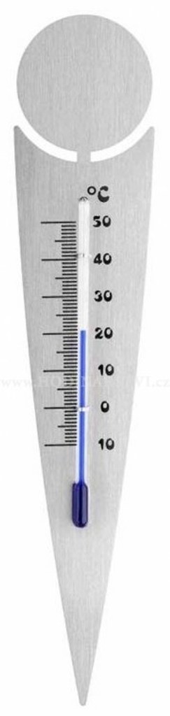 Nerezový teploměr do květináče vhodný pro použití v interiéru i exteriéru. Ideální pro umístění reklamy nebo jakékoliv dekorace v horní části.