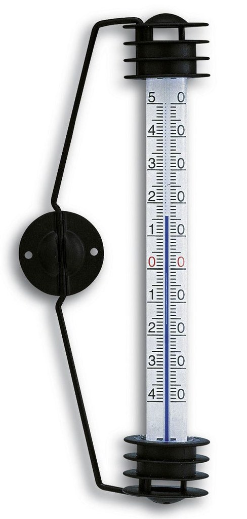 Okenní teploměr vyroben z plastu a kovu. Má dobře čitelnou stupnici, celý teploměr lze otáčet v držáku.