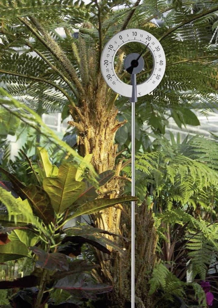 Bimetalový zahradní teploměr v novém "lízátkovém" designu. Odolný povětrnostním podmínkám. Vhodný k zapíchnutí do půdy. Neobyčejný design, stupnice a černý ukazatel vyrobený z eloxovaného hliníku, jenž je odolný proti korozi.
