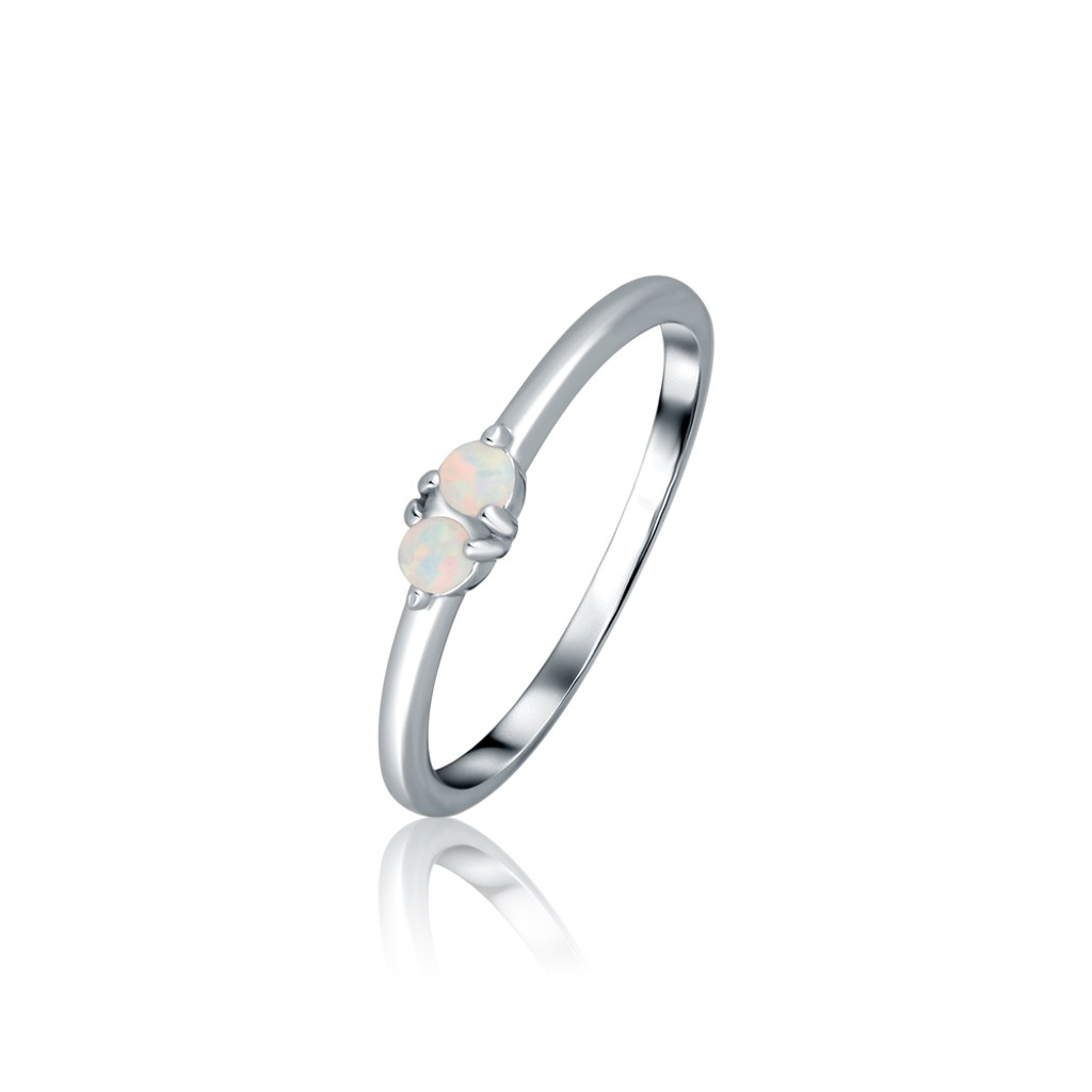 MINET Stříbrný prsten KYTIČKY s bílými opálky