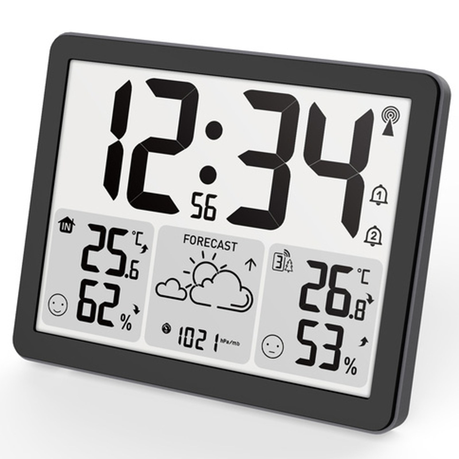 Hodiny a meteostanice s jednoduchým designem, mnoha užitečnými funkcemi a možností celoplošného podsvícení. Tento přístroj můžete využít jako nástěnné hodiny, ale také jako stolní meteostanice či budík.