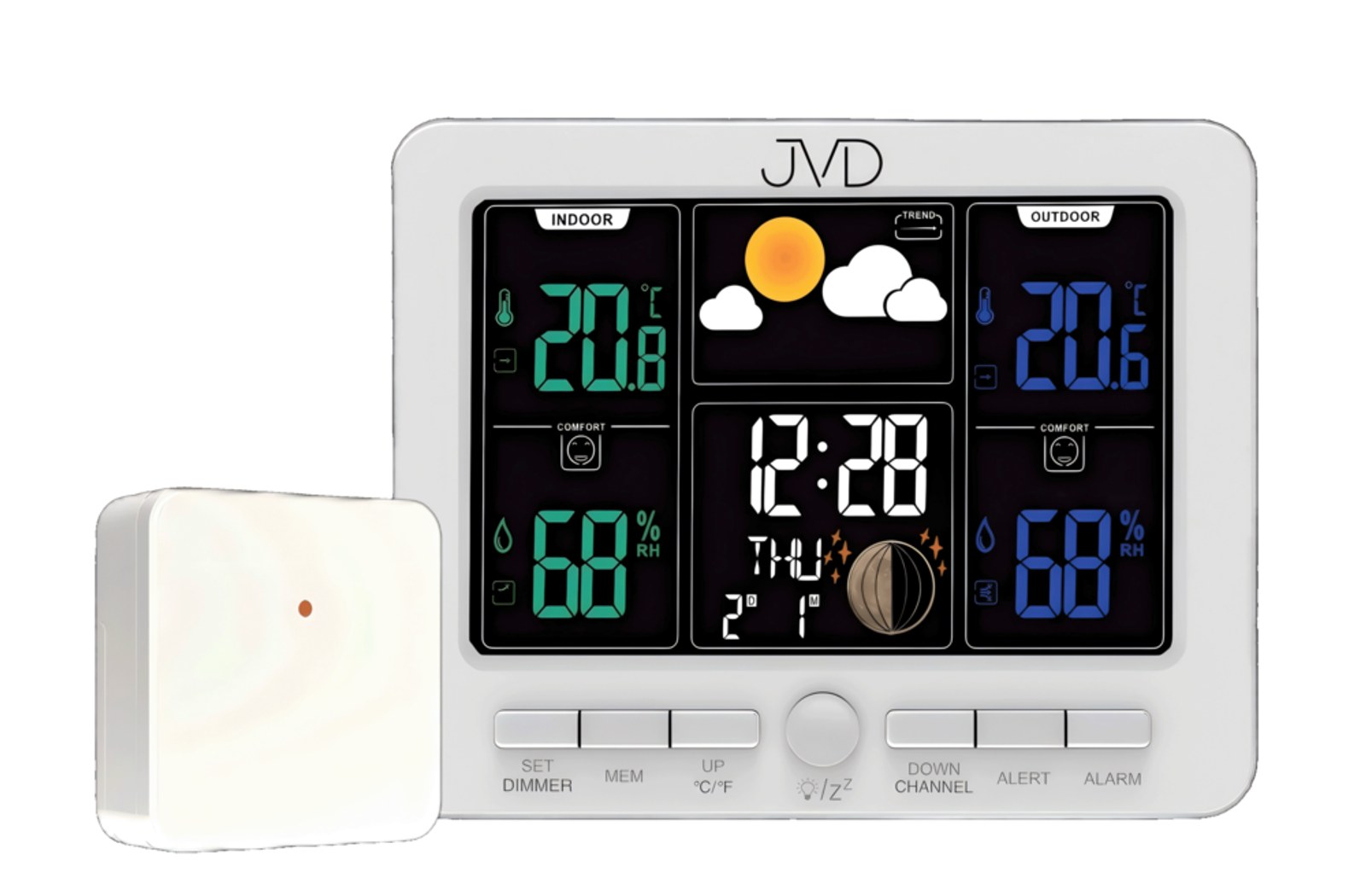 Nejen designově zajímavá, ale i mnoho funkcí a přehledný, výborně čitelný displej, to je nová meteostanice od české značky JVD RB6685 Velkou výhodou je stálé osvětlení displeje, takže stanice bude čitelná nejen ve dne, ale i v noci.