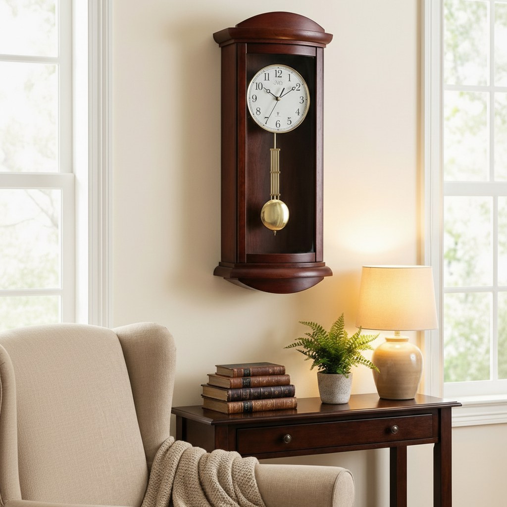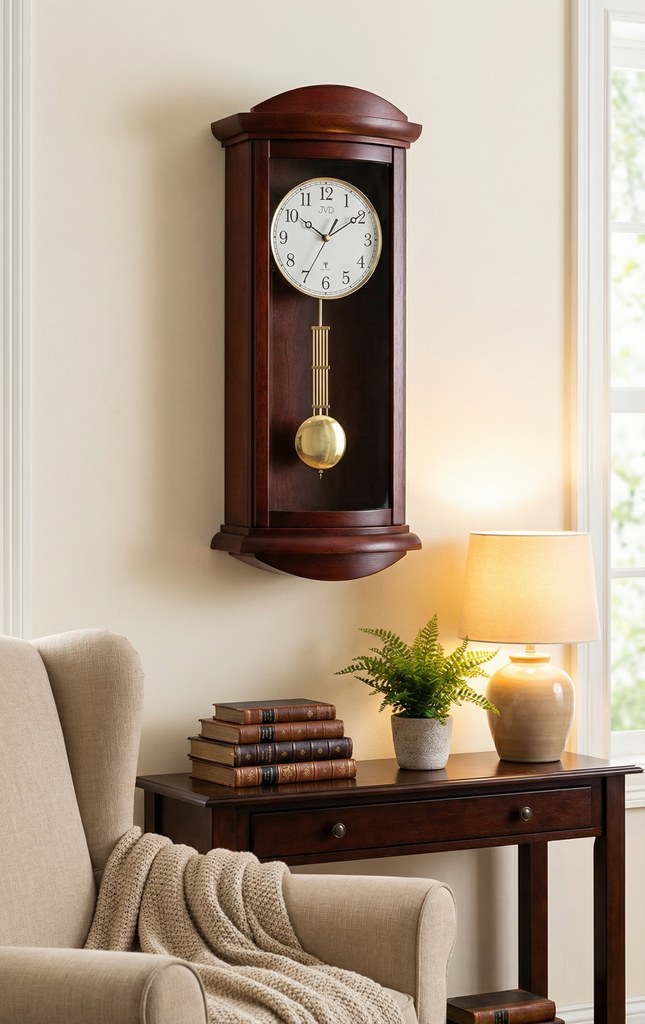 Elegantní kyvadlové hodiny značky JVD NR24020, které krásně doladí váš interiér. Tyto hodiny navíc mají možnost čtyř melodií! Pozornost upoutají určitě i pozlacené části hodin.
