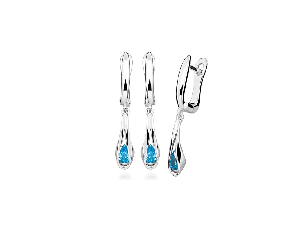 Stříbrné visací náušnice JVD s tyrkysovým zirkonem