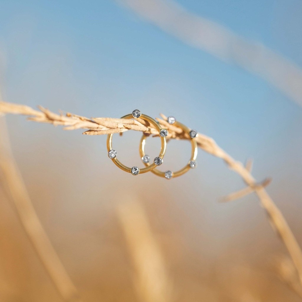 MINET Luxusní Rosegold stříbrné náušnice kroužky s bílými zirkony