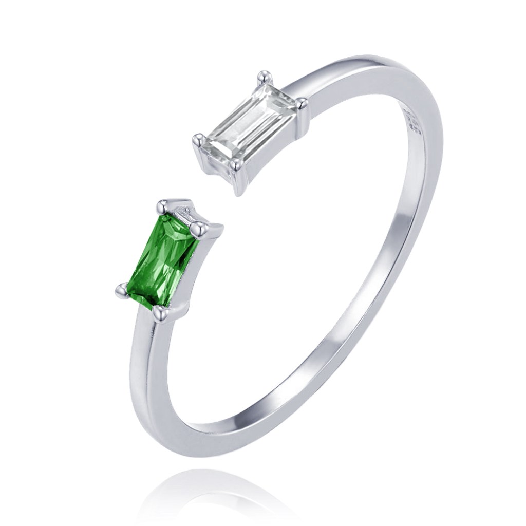 MINET Elegantní stříbrný prsten s bílým a zeleným zirkonem
