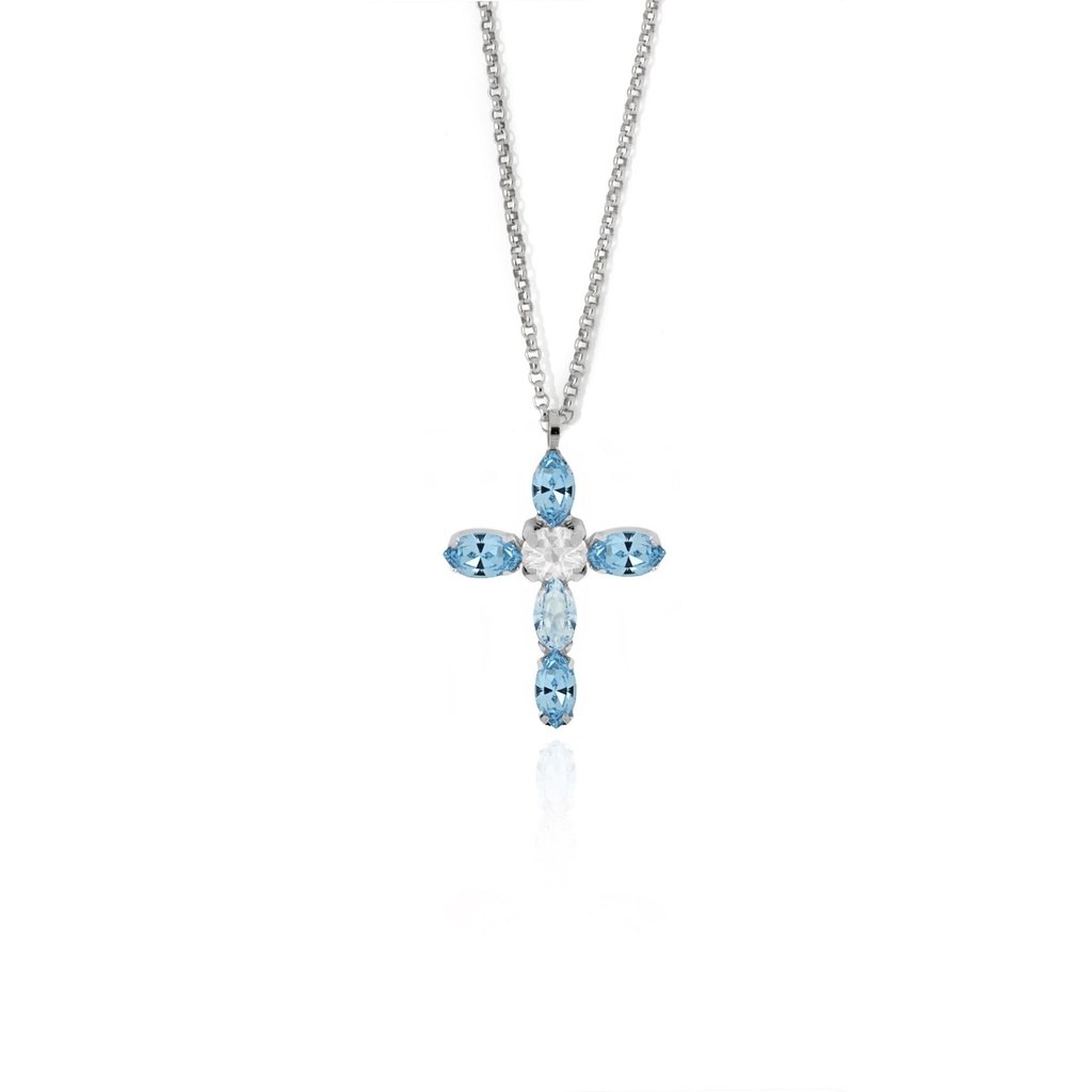 MINET Stříbrný náhrdelník KYTIČKA se světle modrými zirkony