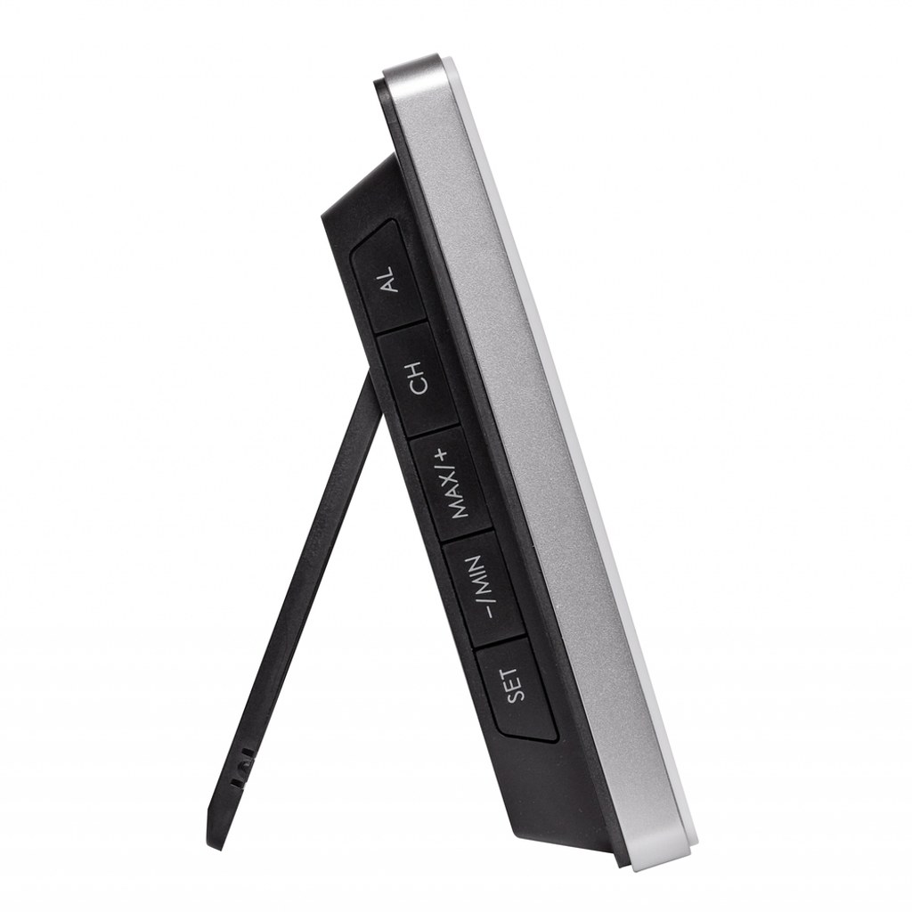 Venkovní teplota se měří pomocí bezdrátového čidla, které je součástí balení. Vedle aktuální teploty se stále zobrazuje denní nejvyšší a nejnižší naměřená teplota (automatický reset, další min-max hodnoty s manuálním resetováním lze zobrazit po stisku tlačítka). Zabudovaný senzor měří vnitřní teplotu a vlhkost, ikona smajlíka ukazuje, zda jsou tyto hodnoty optimální. Čas a datum jsou řízené rádiovým DCF signálem. Nechybí ani doplňková funkce budíku.