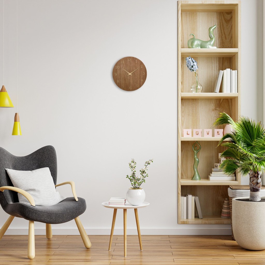 Tyto nástěnné hodiny mají příjemný vzhled. Jsou vyrobeny z dřevěné dýhy s přírodní kresbou a dobře se hodí k obývacímu stylu v teplých barvách nebo zemitých tónech. Tvarované 3D číslice a dřevěné ručičky se na ciferníku hodin obzvlášť dobře vyjímají. Můžete si vybrat tmavou barvu na světlém podkladu nebo světlou na tmavém povrchu. Díky tomu budete mít vždy přehled o čase, ať už se nacházíte v obývacím pokoji, kanceláři, kuchyni či v jiné místnosti.