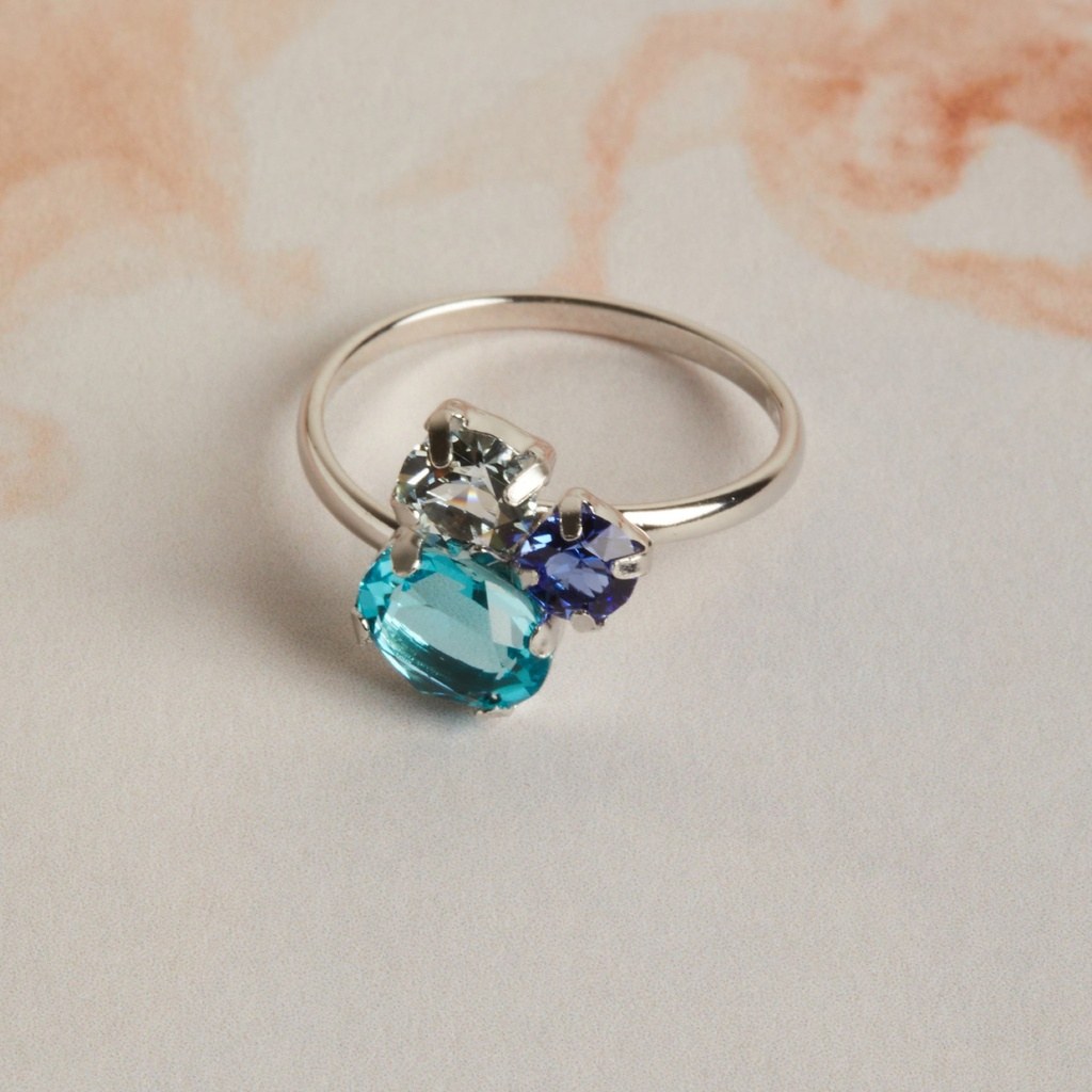MINET Stříbrný prsten sněhová vločka s bílými a modrými zirkony