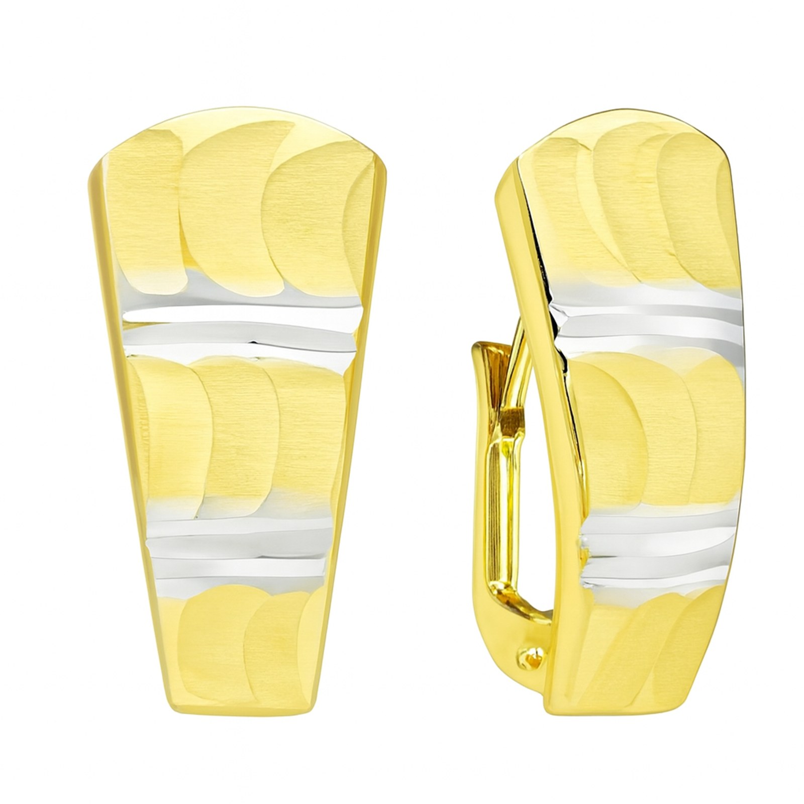 Zlaté 585/1000 náušnice dvoubarevné s gravírováním klapkové TU-3019