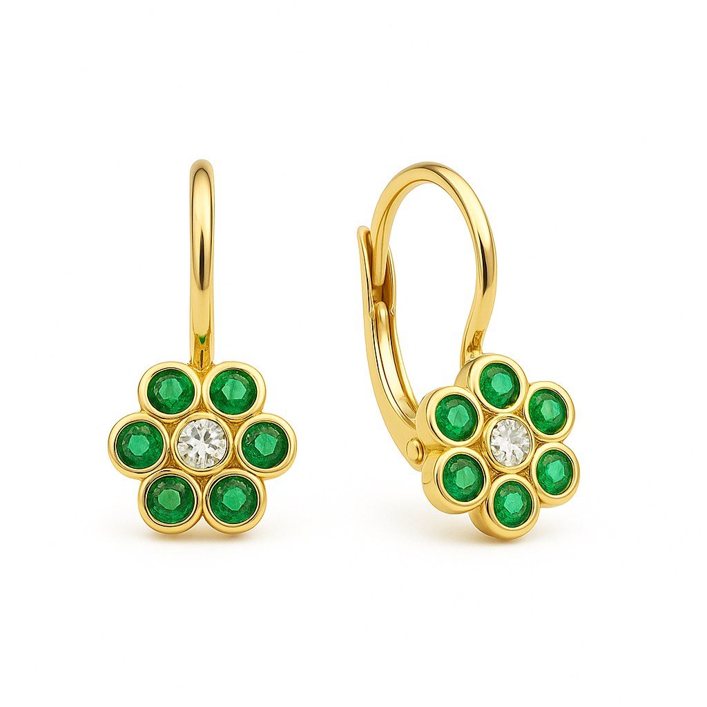 Zlaté náušnice se zelenými kameny klapkové