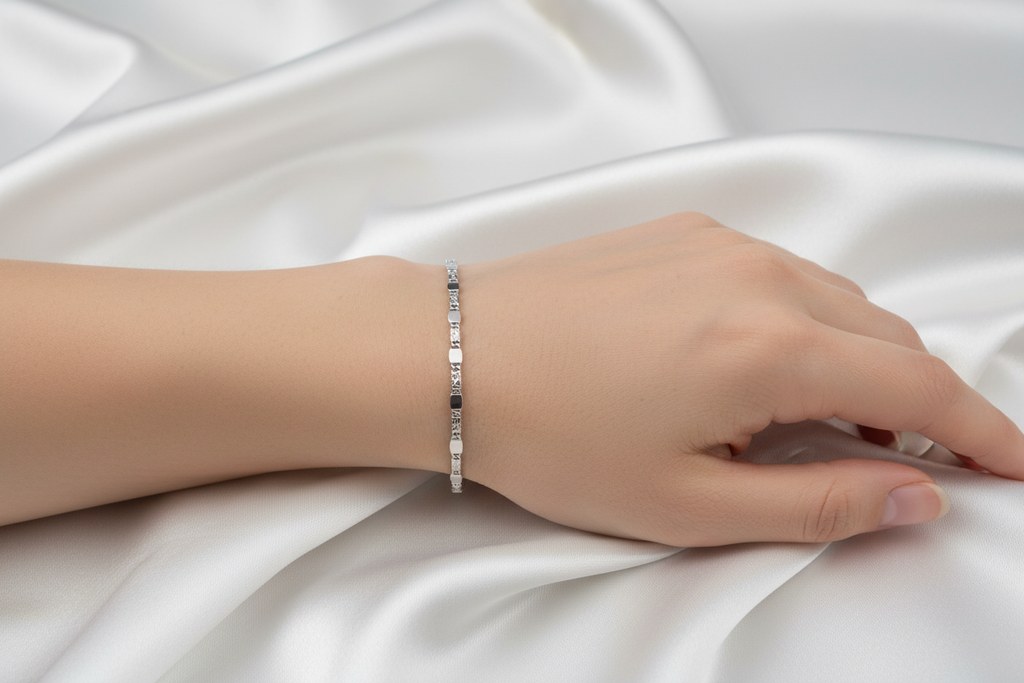 Zlatý 585/1000 náramek z bílého zlata žiletkový 1238