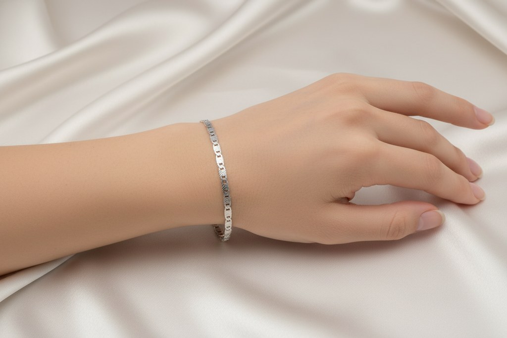 Zlatý 585/1000 náramek z bílého zlata žiletkový 1238