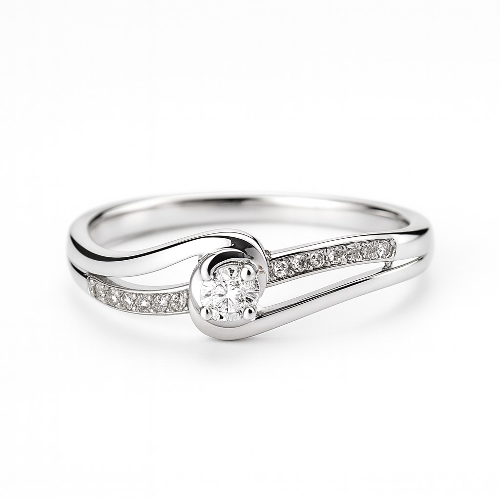 Zlatý prsten z bílého zlata s briliantem