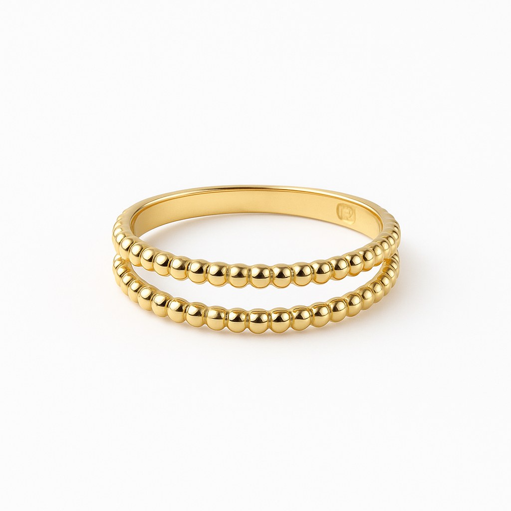 Zlatý prstýnek s drobnými zlatými kuličkami