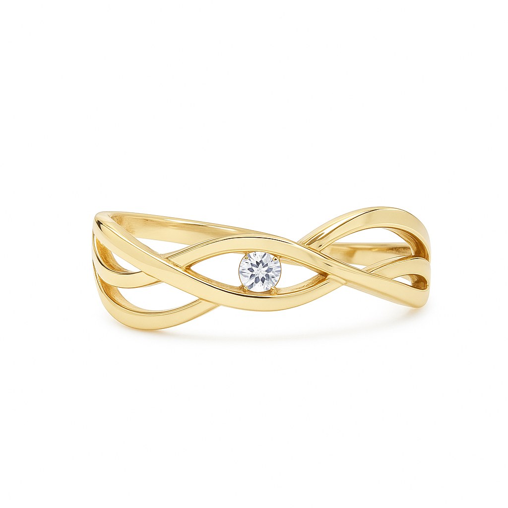 Zlatý prsten proplétaný se zirkonem