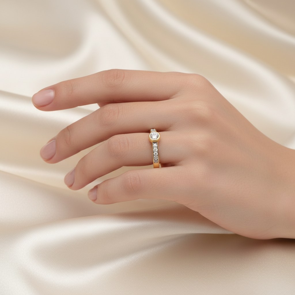 Zlatý prsten zdobený zirkony