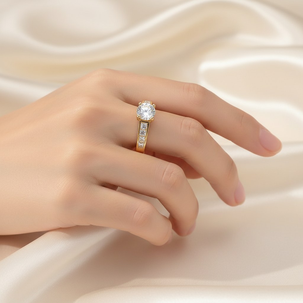 Zlatý prsten zdobený zirkony