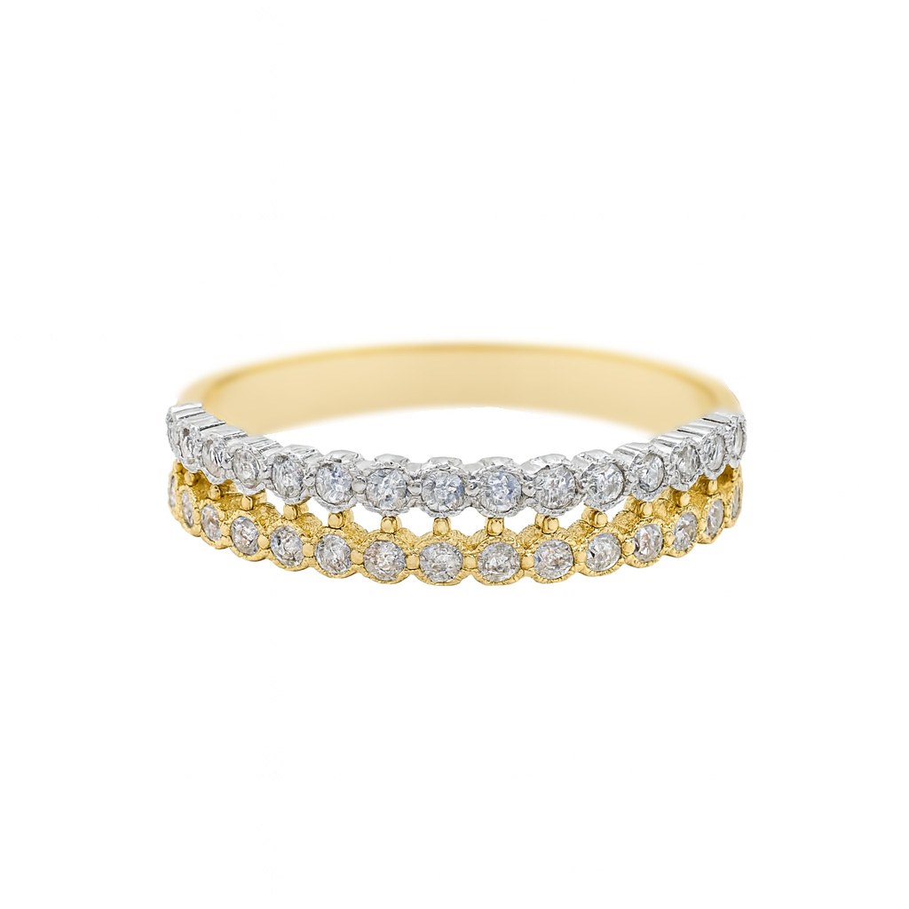 Zlatý prstýnek s dvěma řadami zirkonů