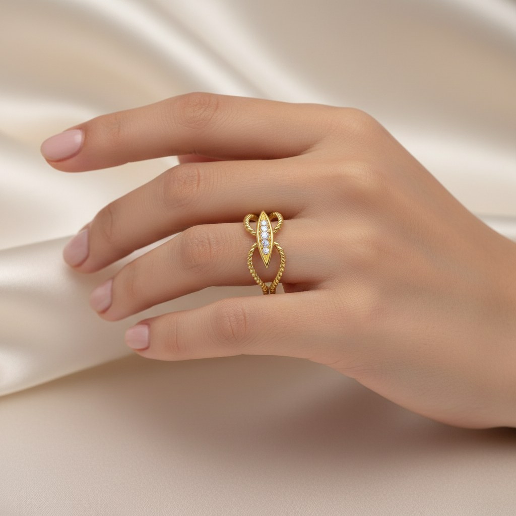 Zlatý zdobený prsten se zirkony