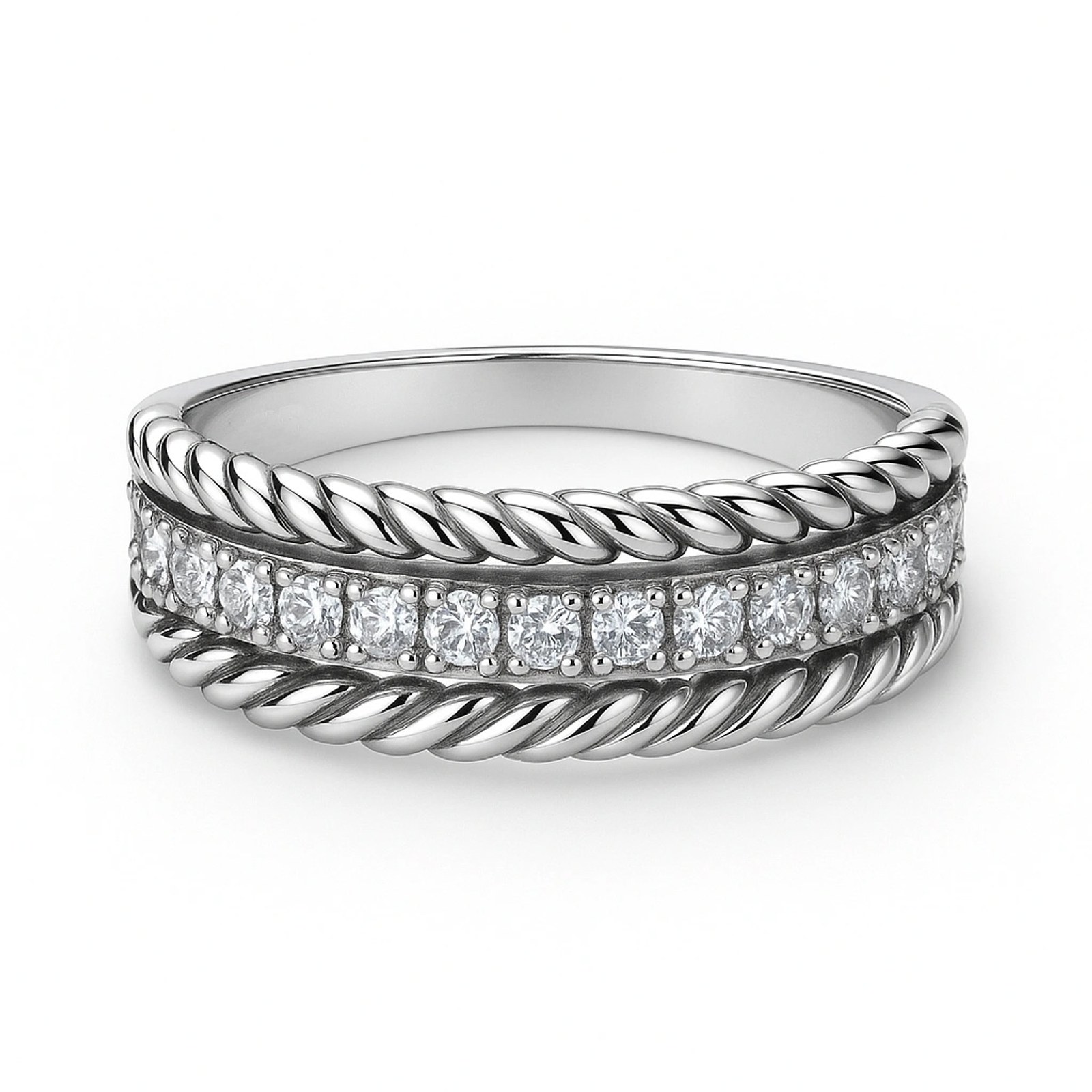 Zlatý prsten z bílého zlata se zirkony¨