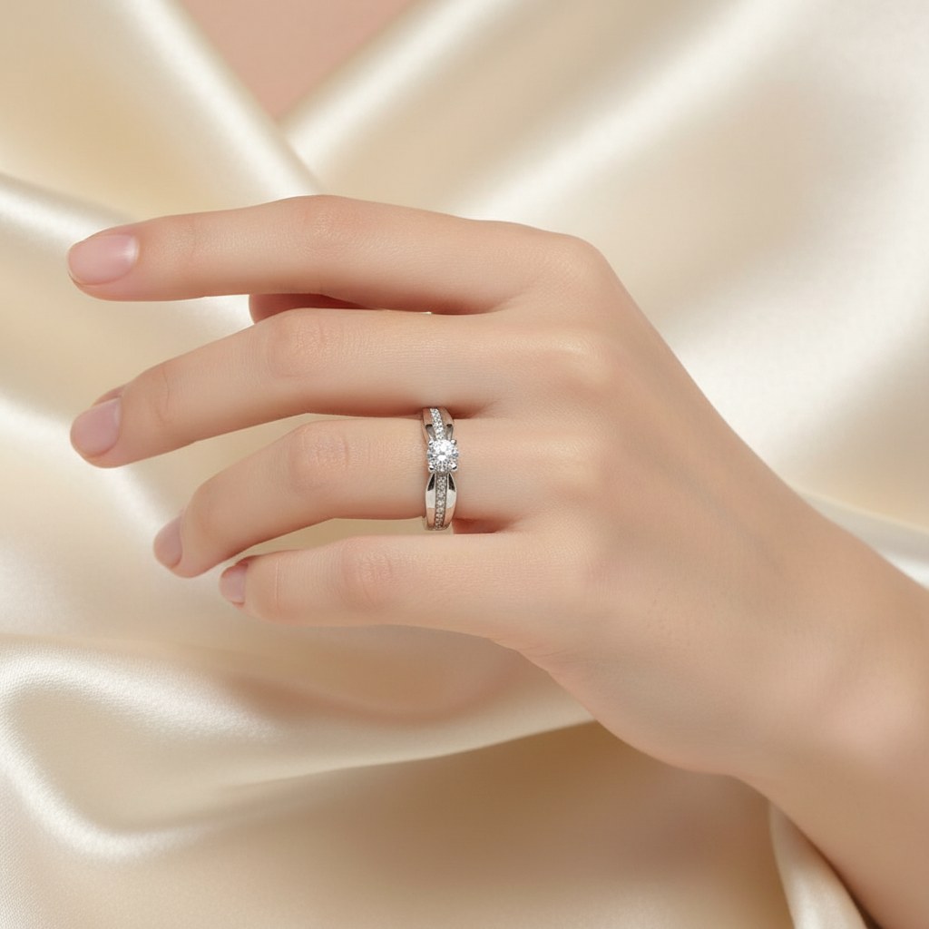 Zlatý prsten z bílého zlata se zirkonem