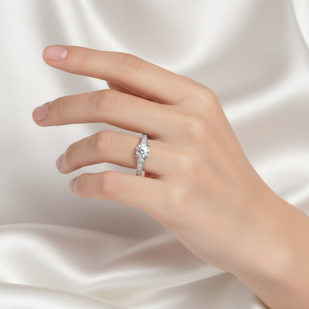 Zlaty prsten z bílého zlata se zirkony