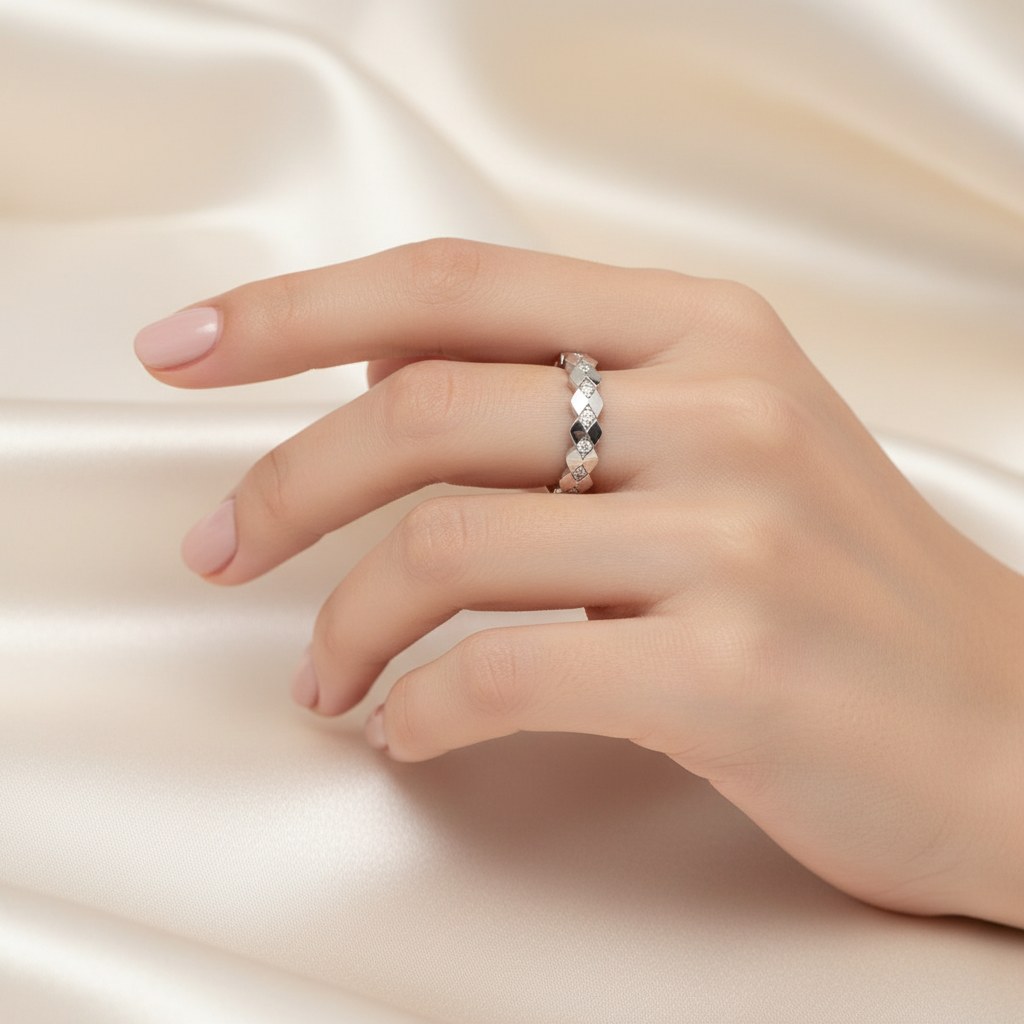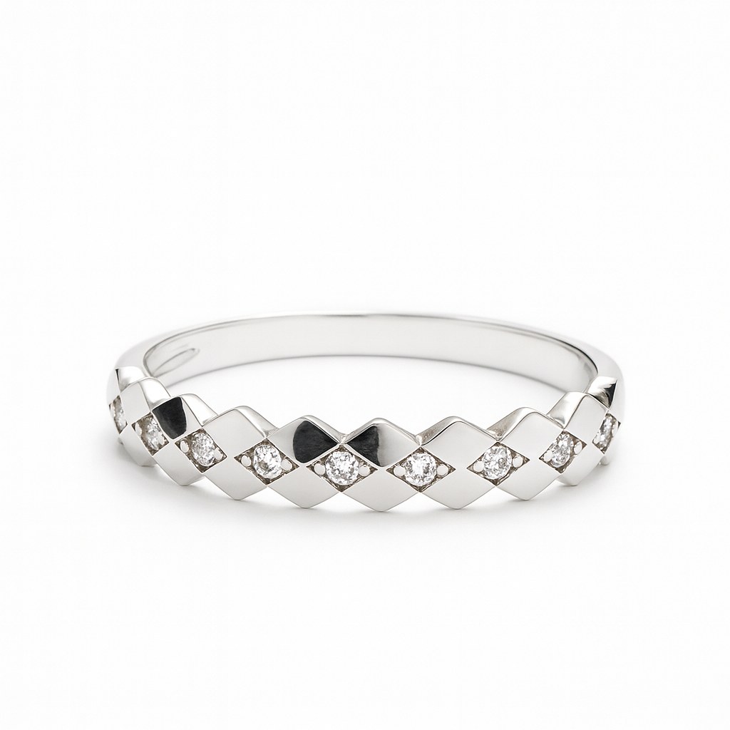 Zlaty prsten z bílého zlata se zirkony
