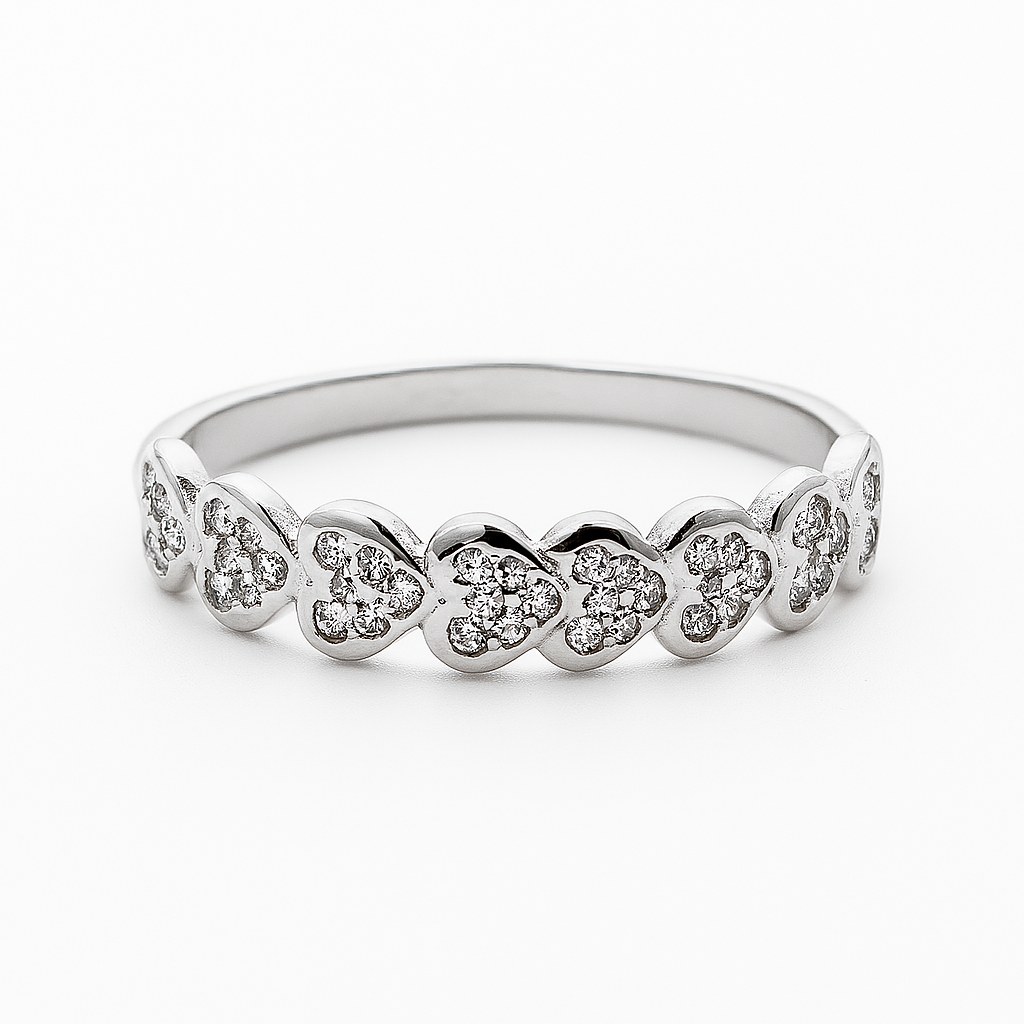 Zlatý prsten z bílého zlata se zirkony do tvaru srdíček